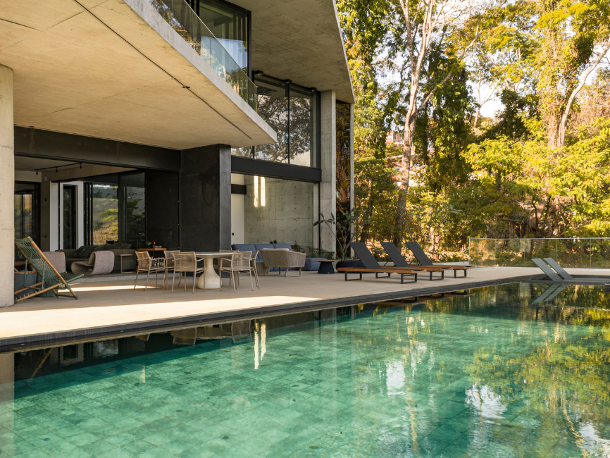 Ubicada en un terreno de fuerte pendiente dentro del condominio Aldeia do Vale, en Goiânia, Goiás, esta residencia parte de una estrategia de implantación que prioriza el respeto por la topografía natural. El proyecto evita cortes agresivos en el terreno y aprovecha el desnivel para organizar el programa arquitectónico de manera eficiente y sensible al paisaje.