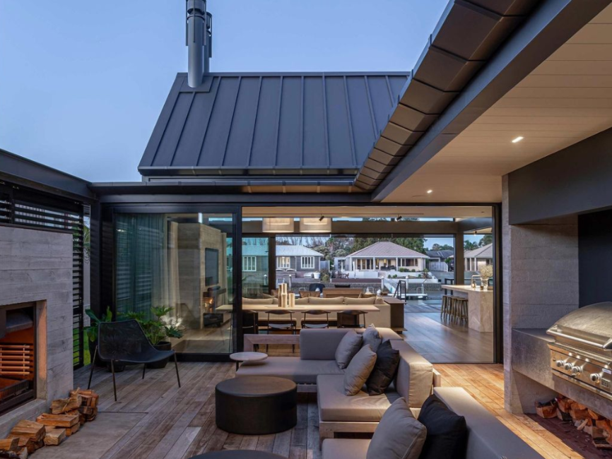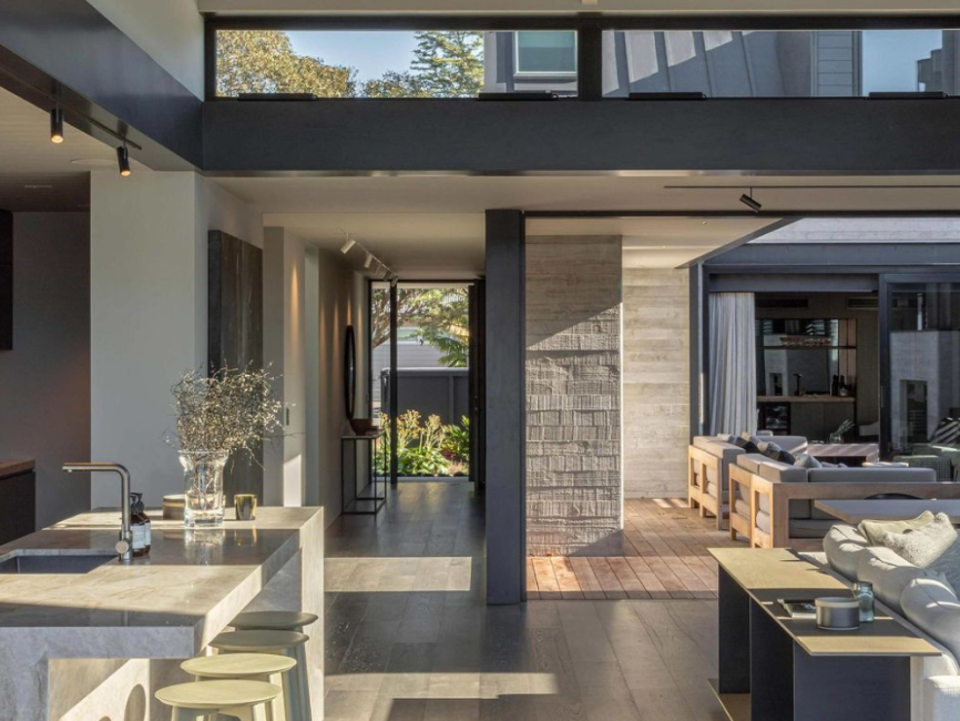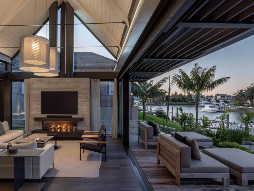 La residencia “Waterways Residence” en Coromandel, diseñada por Johnston Architects, se abre al canal residencial de Pauanui Waterways, permitiendo que desde la sala de estar los habitantes desciendan directamente hacia el agua: pasando por una amplia terraza y una piscina tipo plunge, hasta el muelle que conecta con el puerto salino de la bahía de Tairua.