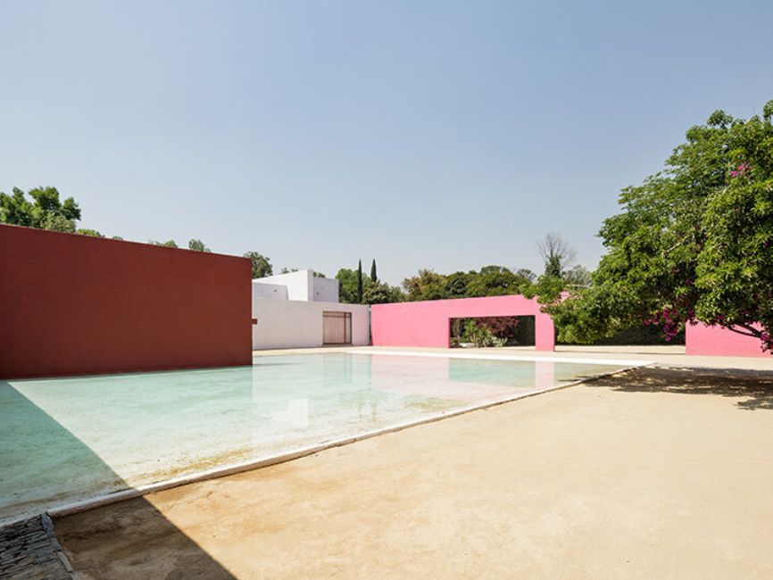 La apertura se acompañó con dos exhibiciones principales. La primera, titulada “Barragán en Barragán”, reúne más de una decena de proyectos icónicos del arquitecto mexicano —como la Casa Gálvez, la Casa-Estudio Barragán y el propio La Cuadra— en una retrospectiva curada por Jorge Covarrubias. Con maquetas y fotografías de archivo, la muestra explora cómo Barragán integró tradiciones vernáculas, luz, color y paisaje para construir un lenguaje arquitectónico personal y poético.