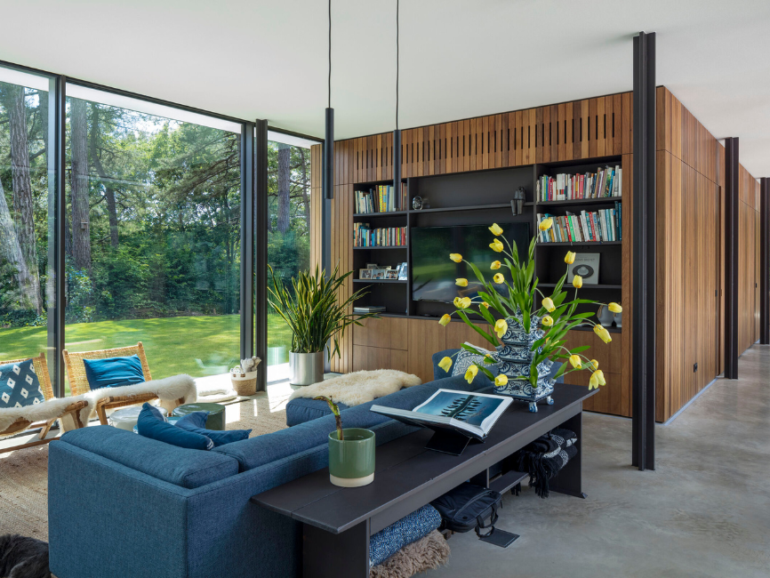 El diseño apuesta por una paleta de materiales sobrios que dialogan con el paisaje —madera, vidrio y acabados en tonos neutros— logrando un equilibrio entre modernidad y sensibilidad ambiental. La villa no solo se adapta a las formas de la duna, sino que parece emerger de ella, creando una sensación de continuidad entre arquitectura y topografía.
