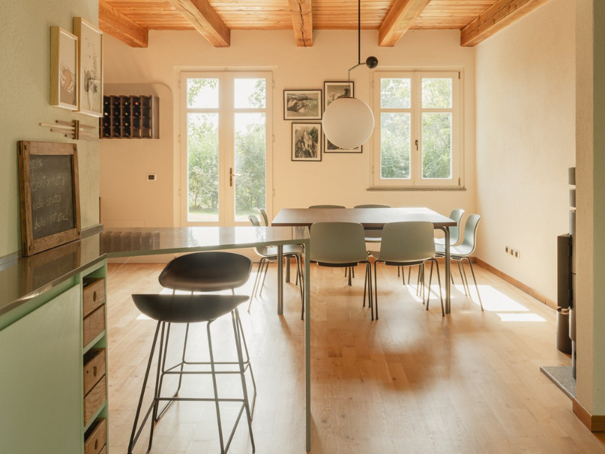 Tras años disfrutando de la vibrante vida nocturna de Turín, esta joven pareja decidió alejarse de la ciudad, aprovechando las crecientes oportunidades de trabajo remoto. Gracias al terreno ondulado, las demás casas quedan ocultas a la vista, permitiendo que cada espacio de la vivienda armonice con la naturaleza circundante, que se convierte en protagonista. La conexión con el entorno natural y la pasión por las actividades al aire libre guiaron todo el proceso de diseño.