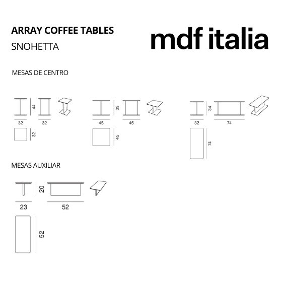 ARRAY COFFEE TABLES mejoran las posibilidades compositivas del sistema, añadiendo practicidad y opciones de superficie adicionales. Disponible en nogal Canaletto, roble blanqueado y roble natural, la colección incluye tres versiones exentas que pueden utilizarse individualmente o combinarse para crear diversas configuraciones, junto con una mesa de accesorios que se adapta perfectamente a los módulos del sofá y puede reposicionarse fácilmente según sea necesario. Con su diseño esencial, estas mesas son complementos versátiles, perfectos no solo para el sistema Array, sino también para combinar con otras colecciones.