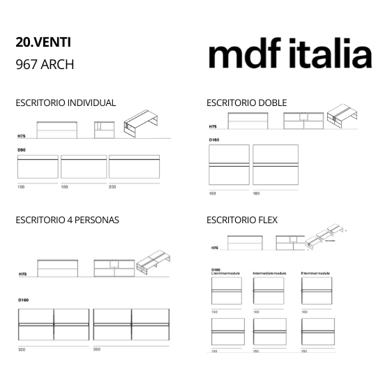 El sistema de oficina 20.VENTI, diseñado por 967Arch para MDF Italia, reinterpreta el escritorio desde una visión contemporánea, fiel a su ADN esencial y arquitectónico. Su estructura esbelta, definida por un perfil de 20×20, integra la gestión de cables y crea un equilibrio preciso entre llenos y vacíos.