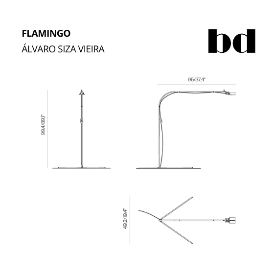 Lámparas de pie modernas modelo FLAMINGO, con estructura desmontable en varilla de hierro cromado, aletas orientables para el control de la luz en aluminio anodizado mate, puede sustituir una vela en la cena, iluminar un cuadro o el atril, incluso permite leer en la cama sin molestar al acompañante.