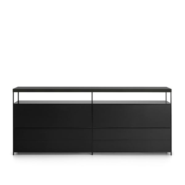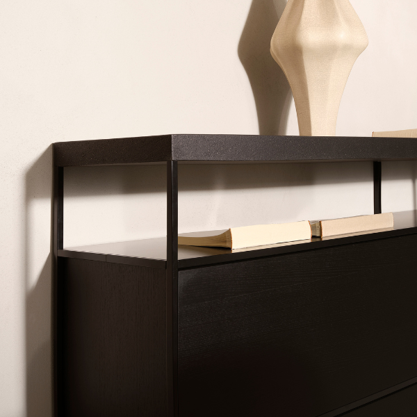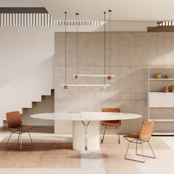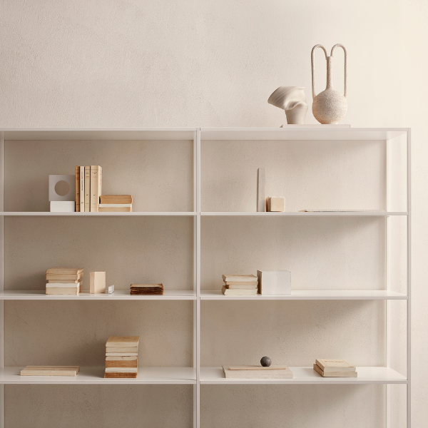 MINIMA interpreta los entornos de oficina y hostelería mediante un lenguaje esencial y funcional, manteniendo la coherencia estética que define toda la colección. Además de configuraciones de suelo y colgantes, aparadores y biombos, el sistema incluye Minima Office: una variante que amplía el espacio entre estantes para ofrecer mayor capacidad de almacenamiento, ideal para oficinas, salas de reuniones y áreas operativas. La modularidad del diseño permite soluciones a medida que se adaptan a diferentes contextos, desde espacios abiertos hasta oficinas ejecutivas, y desde salones, restaurantes y cafeterías hasta suites de hostelería.