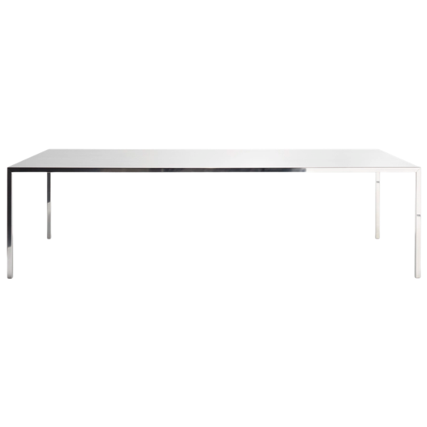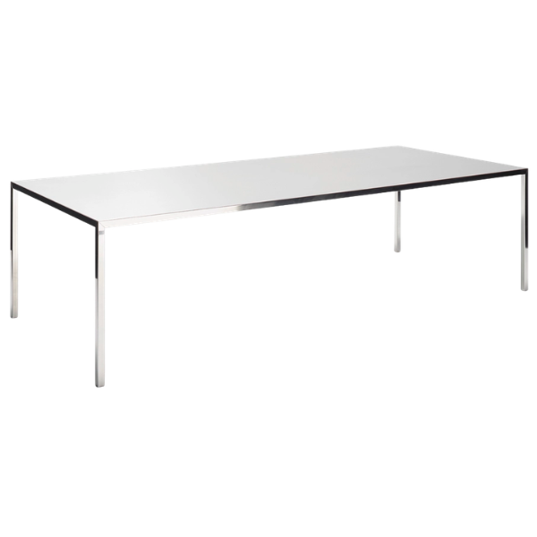 Uno de los diseños más representativos de MDF Italia es la mesa de comedor TENSE, disponible en dos versiones: con acabado mono-material en blanco mate, de resina acrílica y minerales de roca, o con acabado en mate negro y gris en resina acrílica y laminado estratificado, disponible en 36 tamaños, equipada con una o dos aberturas para la gestión de cables y la bandeja de cables «undertop».