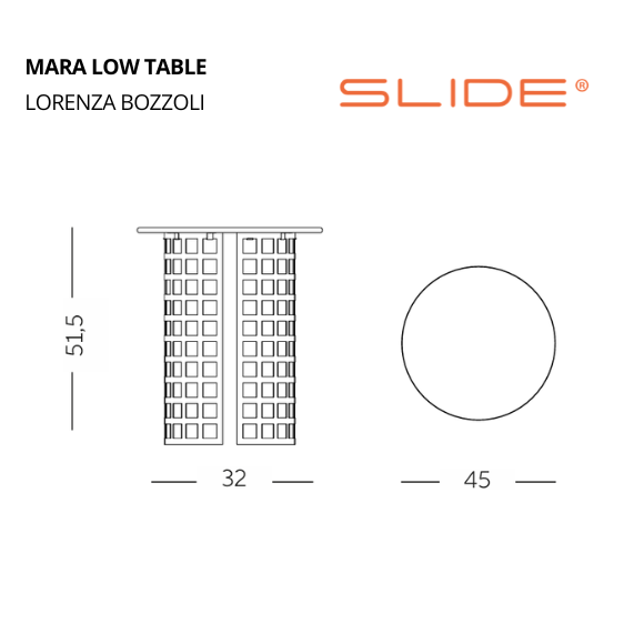 MARA LOW TABLE es el elemento elegante que realza la colección Mara de Lorenza Bozzoli. Esta familia de mesas bajas, disponible en diferentes dimensiones y colores, se caracteriza por una base de hierro pintado con una estructura especial de rejilla que genera un delicado efecto visual de ligereza. La tapa en HPL, del mismo color que la base, completa el diseño con una estética coherente y refinada. MARA LOW TABLE está disponible con cubierta redonda o cuadrada.