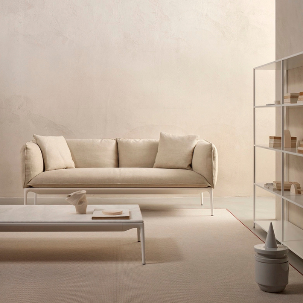 YALE X es un sofá confortable con estructura interna, respaldo y reposabrazos en aluminio tubular, acolchado y con cubierta de espuma de poliuretano de densidad variable en Rollo Fill® y guata de poliéster. Está disponible en dos profundidades de asiento y dos alturas de respaldo, lo que garantiza una posición cómoda para sentarse. Incorpora cojines de gran tamaño con costuras pespunteadas y perfiles elevados.