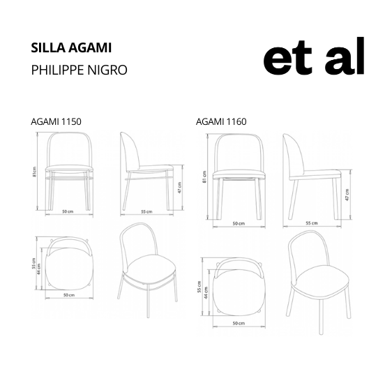 AGAMI, una familia de asientos tapizados con formas suaves y acogedoras diseñadas para la industria hotelera. La sobriedad y sencillez de sus líneas se expresa en su capacidad de combinarse con distintas bases: una de metal, cuya estructura evoca el arquetipo de la silla bistró, y otra de madera maciza. Estas posibilidades hacen que Agami sea extremadamente versátil, permitiéndole adaptarse a entornos muy diferentes: las líneas de diseño comunes a los dos marcos permiten que las dos versiones convivan a la perfección. La familia Agami se compone de diferentes tipos de asientos: silla , sillón y su versión de taburete disponible en dos alturas.