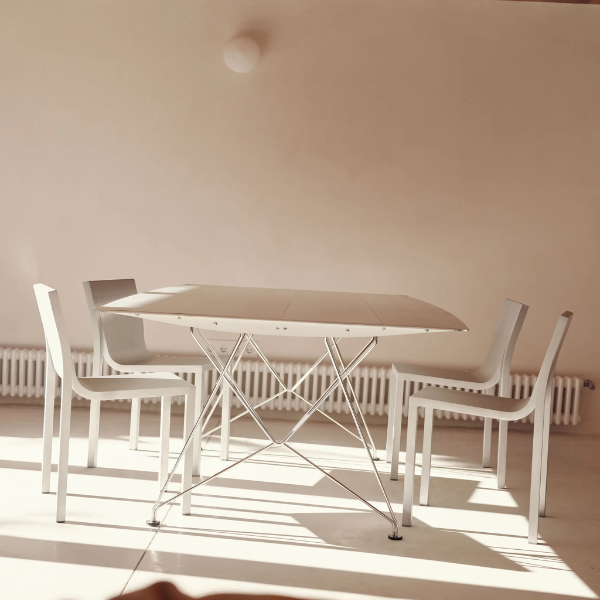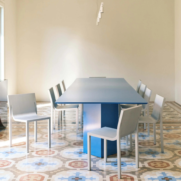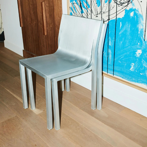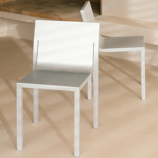 Sabine Marcelis fusiona el diseño atemporal y la escultura en una silla apilable, ligera y fabricada con un cuerpo 100% de aluminio.