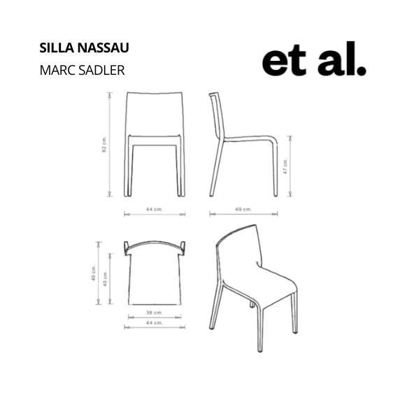 NASSAU, silla tapizada y estructura de una sola pieza en polipropileno reforzado con fibra de vidrio y fabricada con la tecnología de moldeo por aire inyectado que la hace resistente y ligera al mismo tiempo. El respaldo ergonómico con su acabado brillante en el lado exterior está contorneado por un marco imaginario que realza su importancia. El asiento que emerge y se desarrolla desde el respaldo crea una línea fluida y continua. Su diseño simple y formas curvilíneas identifican su carácter.