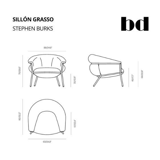 Sillón modelo GRASSO, estructura elaborada de tubo de hierro de 25 mm, asiento y respaldo tapizados con las distintas pieles de BD. Una pieza que puede combinar perfectamente con el reposapies de estructura de tubo de hierro (25 mm) también tapizado con piel.